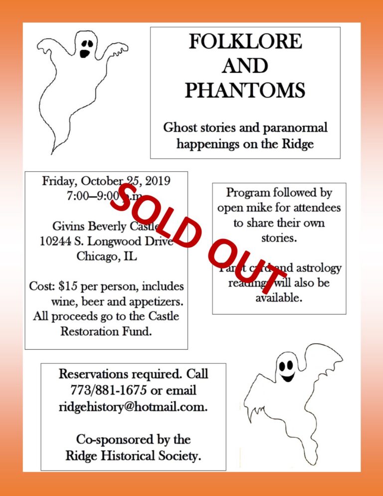 Invitation to “Folklore and Phantoms” event at Givins Beverly Castle, discussing local paranormal experiences