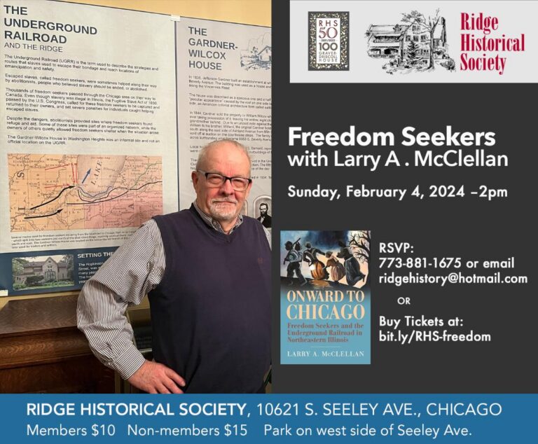 Freedom Seekers with Larry A. McClellan Black History Month Program Focus is the Underground Railroad in Northeastern Illinois Larry A. McClellan, emeritus professor of sociology…