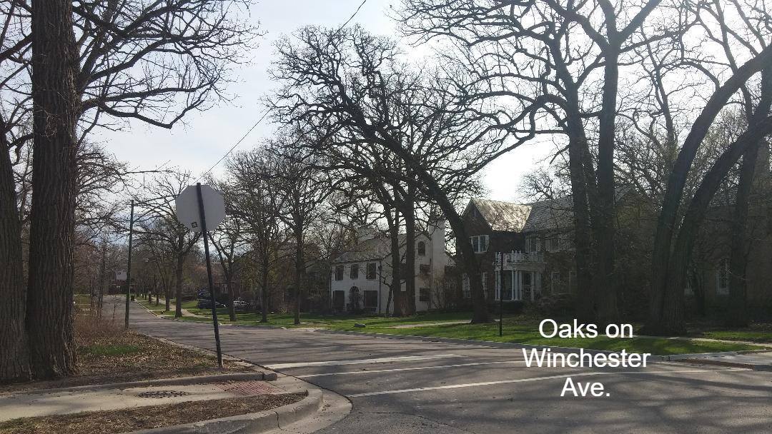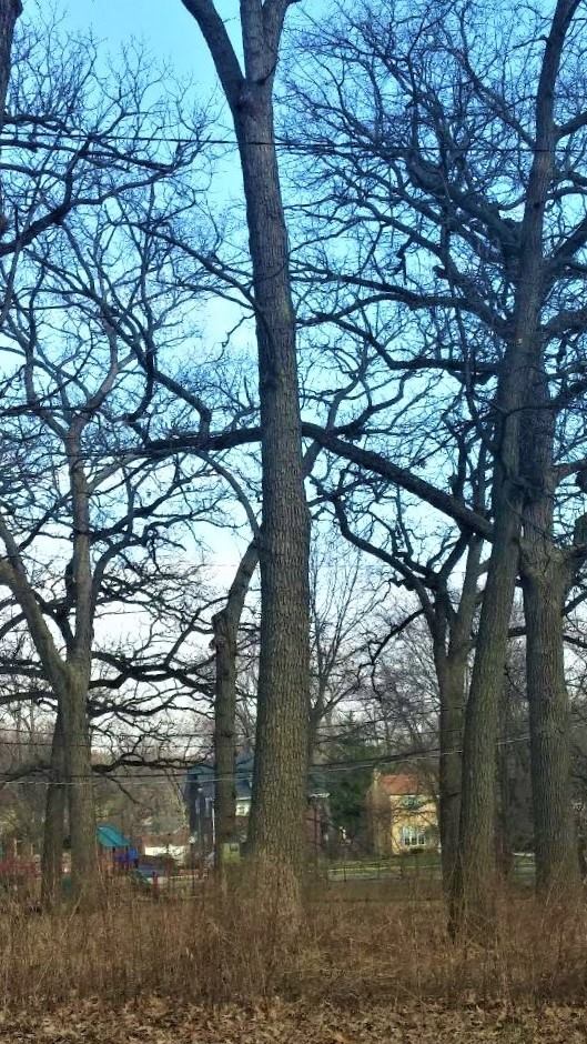Third, we have Hurley Park at 100th St. and Winchester Ave. where there is signage about the once vast oak woodlands that covered the area. We still have old growth oak trees in the area but many of them are reaching the end of their lifespan and will die off in the next 50 years. We have not kept pace with establishing new oak trees.