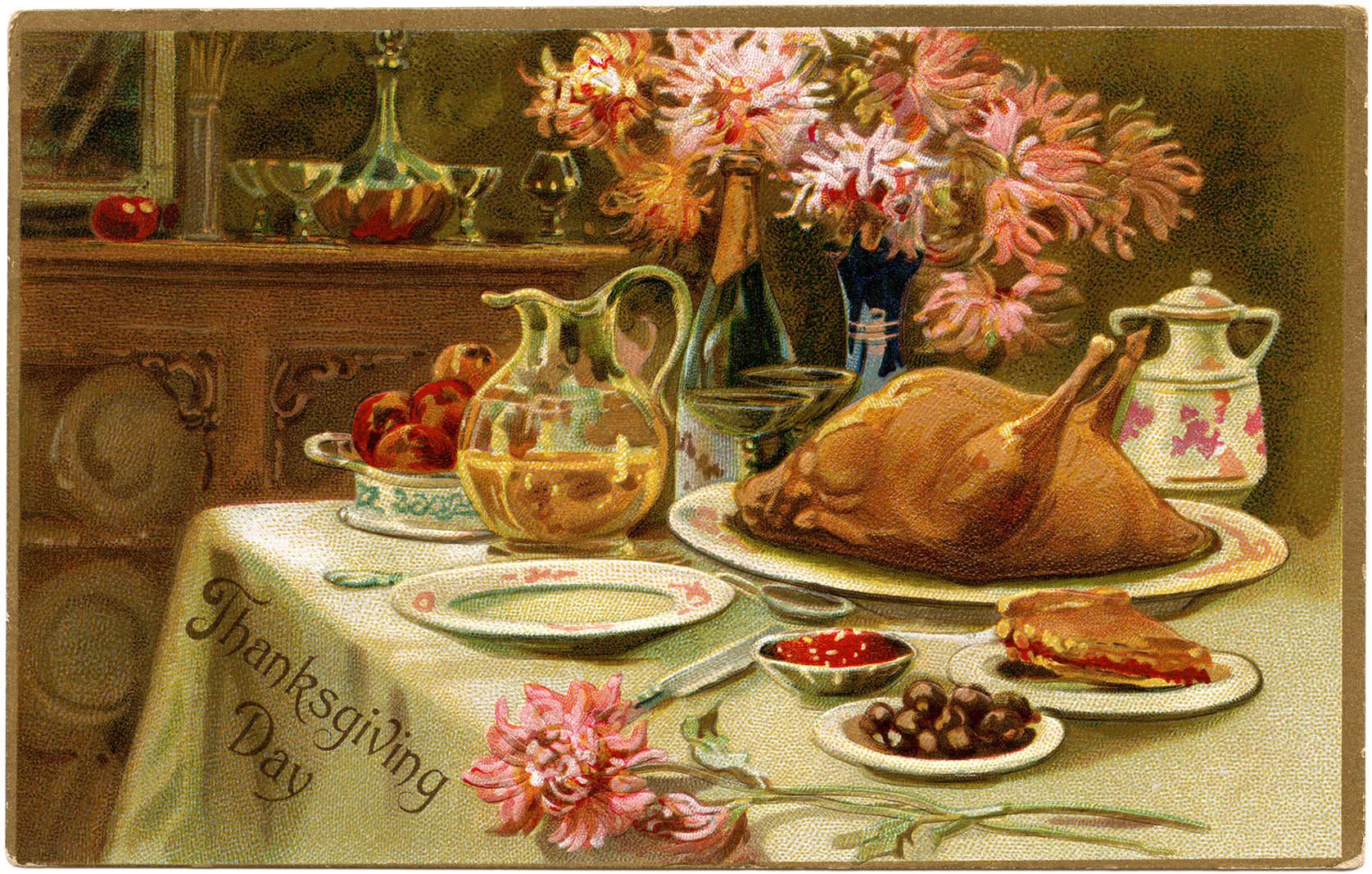 Happy Thanksgiving! Here are some vintage postcards. Since the day is mainly devoted to eating, they all feature feasts.