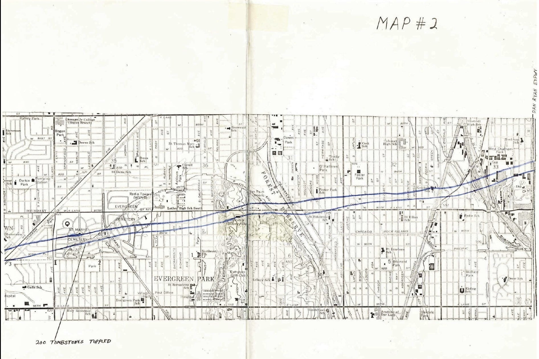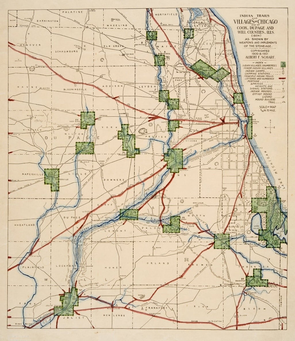 Here is a very interesting map, going back to 1804, updated and reproduced in 1900-01, showing Indian trails and sites in the area. Note the outline of the Blue Island and the sites in the area.
