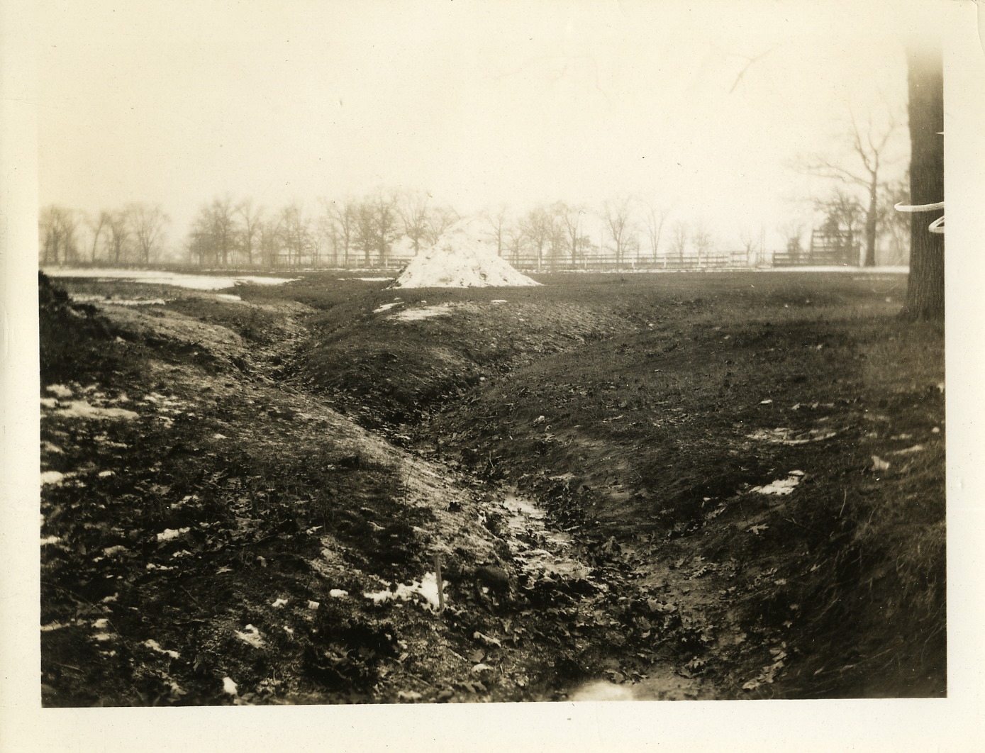 The most unique feature built during this time period was the ravine reinforcement and aqueduct system created in the woods south of 87th Street. This was the site of a natural drain, a geologic formation that allowed water from rain and melting snow to run off from higher to lower elevation. In this case, water from the top of the Ridge drained off to the east, where it formed marshes during the “wet seasons” and was eventually reabsorbed into the ground in the “dry seasons.”