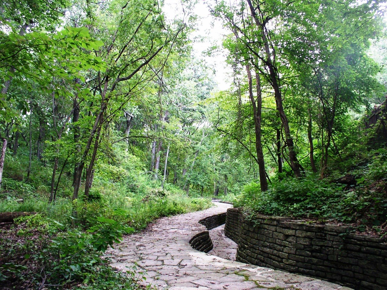 Today’s FPCC materials describe the ravine project as follows: “In the south section of Dan Ryan, a series of stone aqueducts wind peacefully downhill through the site’s oak woodlands. Primarily built as drainage structures and erosion control features, they were constructed from limestone flagstone, adding a unique aesthetic feature to the site. Even today, when rain falls, the channels fill with water from the surrounding area. The water travels through the aqueducts to the lower eastern area of the preserve where it pools and percolates back into the ground.”