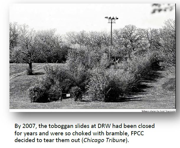 The Dan Ryan Woods (DRW) have always been a unique holding within the Forest Preserves of Cook County (FPCC). The land is a small, isolated tract within the city, far removed from the “outer belt” of the other preserves.