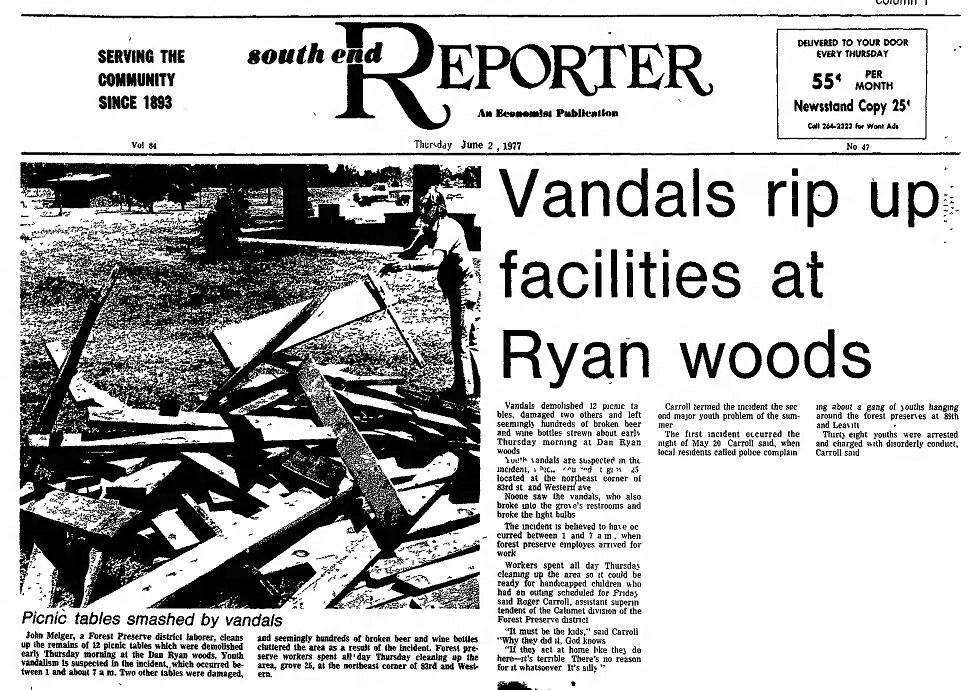 An earlier post in this series mentioned that rangers were among the first employees to be hired by the FPCC. According to a 1993 Chicago Tribune article, this ranger force was plagued by ineffectiveness due to unqualified staff hired through patronage; and due to understaffing, poor training, and poor pay. The article said the rangers acted like the preserves were “Jellystone Park,” when, by the late 1970s, the preserves had actually become “drugstores with cars lining up in the parking lots while their occupants bought PCP and heroin.”