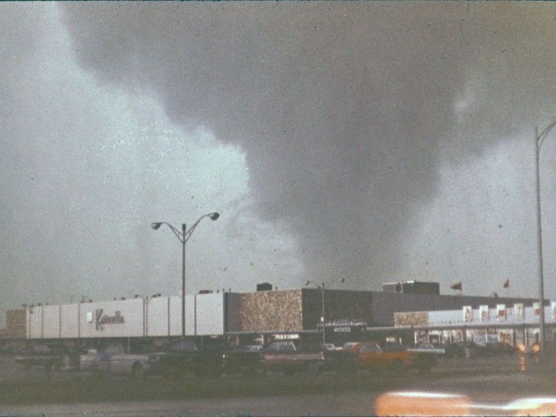 On April 21, 1967, the deadliest tornado in the history of northern Illinois came through the area right at evening rush hour. At 5:24 p.m., the twister touched down in Palos Hills by 106th Street and 88th Avenue where Moraine Valley Community College is now, and started moving east-northeast. It reached its maximum size and intensity as it passed through Oak Lawn, Hometown and Evergreen Park. It continued along 87th Street, destroying a building at the Beverly Country Club, and tore through DRW, uprooting and damaging hundreds of trees. The twister continued northeast, weakening, until it moved into the lake as a waterspout at Rainbow Beach around 79th Street. The tornado caused 33 fatalities and over 1,000 injuries, and more than $50 million in property damage.