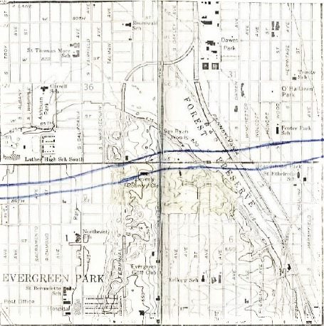 All through the 1960s and 1970s, there was talk of building a “Crosstown Expressway” on the west side of Chicago that would connect the north and south sides. The origins of this plan dated back to Daniel Burnham’s 1909 Plan of Chicago, to divert traffic around the central city. The Crosstown Expressway “corridor” was planned to start at Montrose Avenue where the Kennedy and Eden Expressways connected, and run south along Cicero Avenue, until Midway Airport, where it would veer southeast to connect to the Dan Ryan Expressway. Various routes through the southwest side were considered, including at least one that would have destroyed DRW. Ridge community groups spoke out against any plan that would adversely affect the preserve. The Crosstown Expressway was a political issue and there was only lukewarm public support for the $2 billion project. The plan was abandoned in 1979, although periodically new ideas related to this concept are proposed.