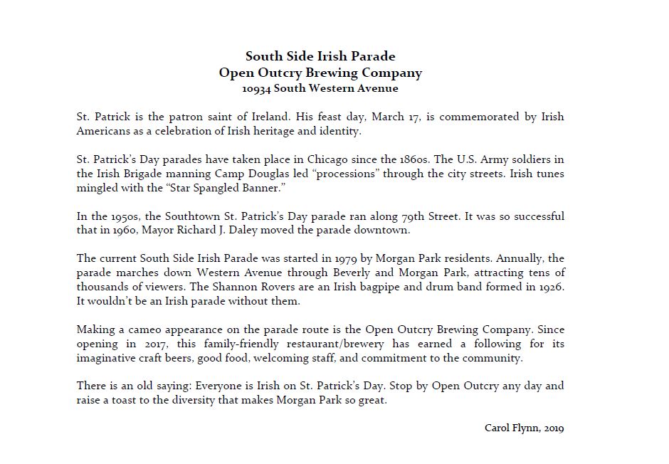 Refreshments will be served. There is a suggested donation of $10 for the event. RHS is located at 10621 S. Seeley Ave., in Chicago. Send a message through the RHS Facebook page or to cflynn2013@yahoo.com with any questions.