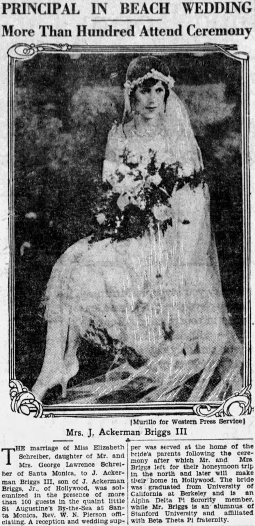 In 1927, daughter Elizabeth was married in Santa Monica. The announcement is attached to this post. As no pictures of Elsa as an adult have been located so far, this picture of her daughter gives a clue as to her possible appearance.