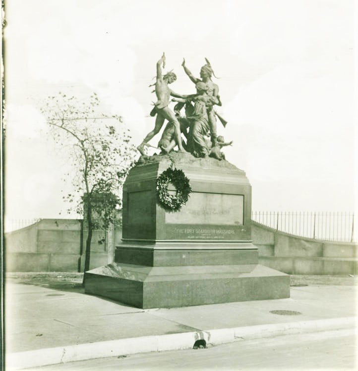On August 15, 1812, the garrison left Fort Dearborn for Fort Wayne. There were 66 military men, nine women, 18 children, and the Miami escorts. They were attacked by 400 to 500 Potawatomi. Thirty-eight of the military, two women and twelve children were killed, and the rest were taken as prisoners. Fifteen Potawatomi were killed. Fort Dearborn was burned down.