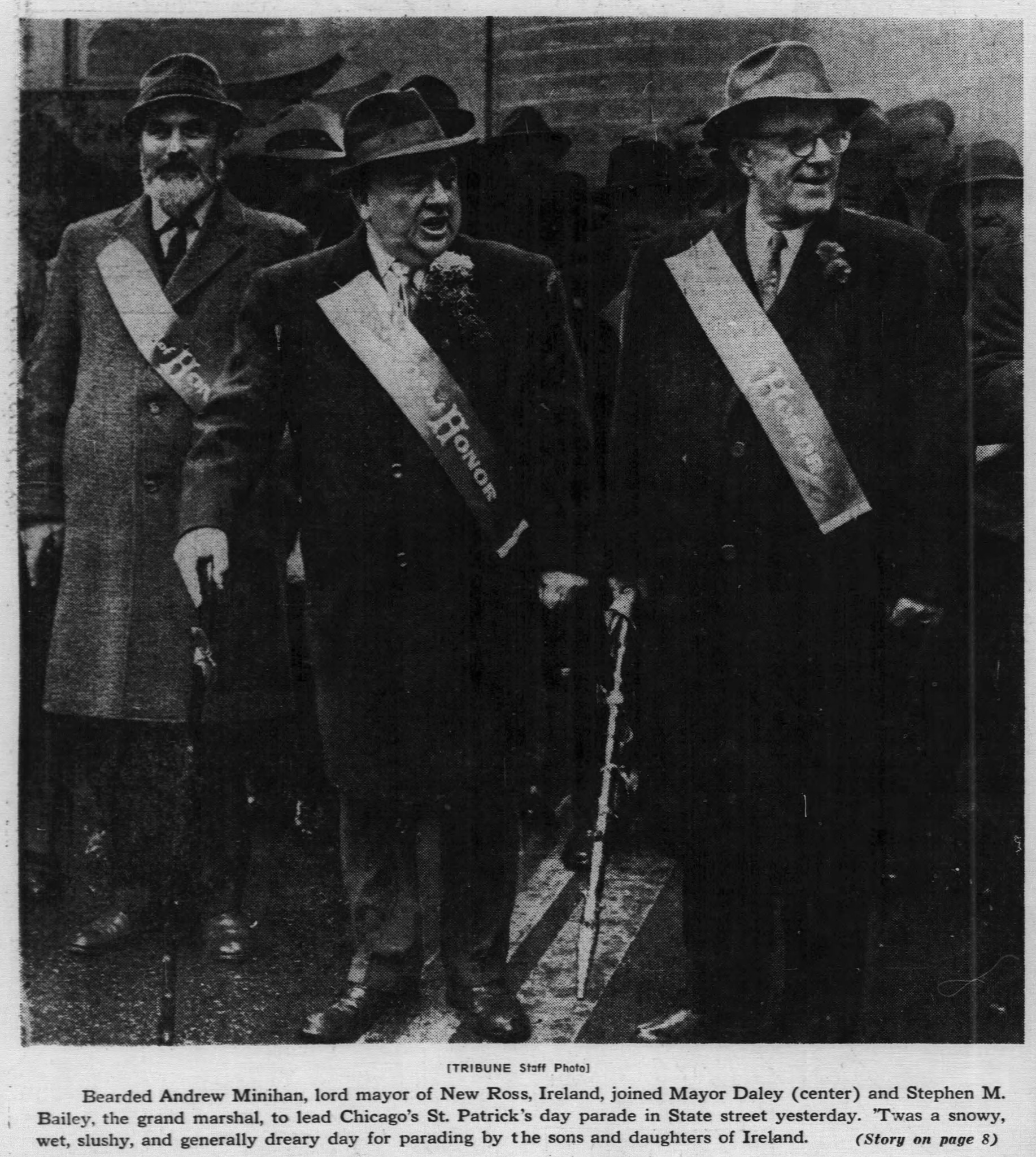 The mayor of New Ross, Wexford, Ireland, a guest of Chicago’s Mayor Richard J. Daley, recorded the entire parade with his “motion picture camera.”