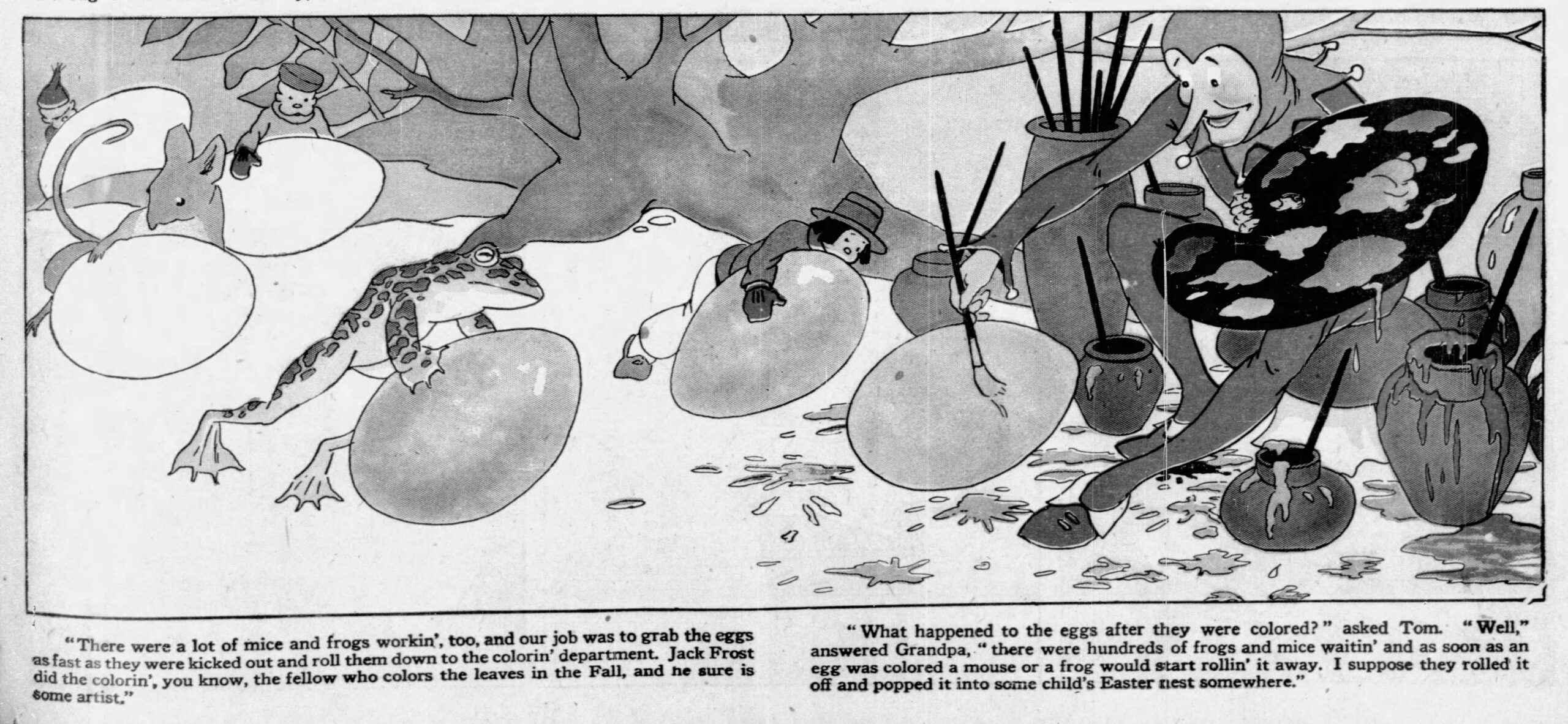 Here's something a little different – a cartoon from Easter 1924 that appeared in the Chicago Tribune. This is how Easter eggs get painted.