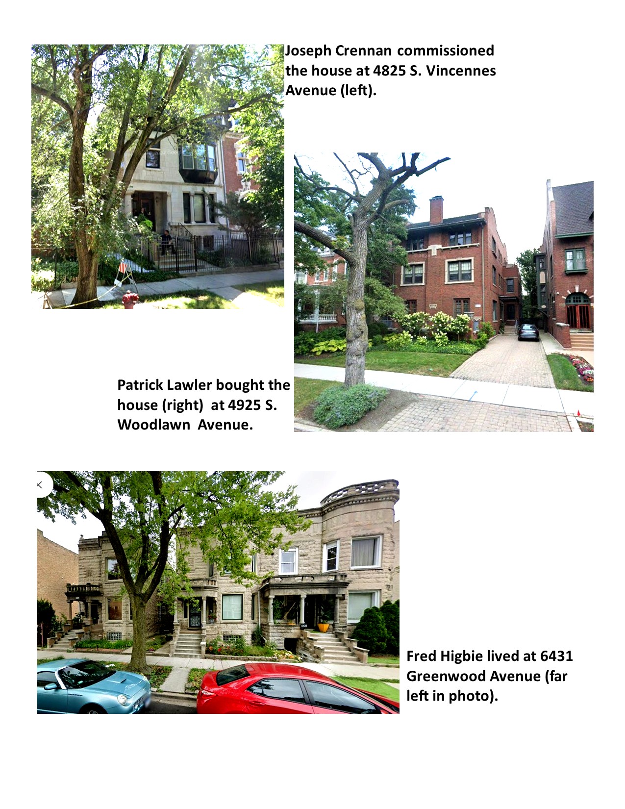 Crennan and Jennie lived at 4825 Vincennes Avenue. Their house is still standing, a stone and brick row house, fashionable for the day, that they hired architect Maurice G. O’Brien to design in 1894, and they moved into in 1895. They had three children, Ruth, William, and Elizabeth.