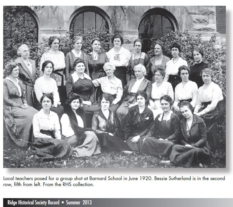 Bessie’s career as a teacher included the Blue Island school and the Hyde Park high school. She took graduate classes at the University of Chicago. The Washington Heights public school started in 1874, and Bessie became principal there in 1883, the first woman to be named a principal in Cook County. In 1893, this school was renamed the Alice L. Barnard School, after another Ridge native who had become the first woman principal of a Chicago school.