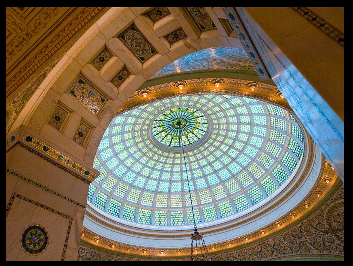 An article from National Geographic features the "Top 10 Ceilings Around the World" and one from Chicago is included – the beautiful Tiffany dome in the Chicago Cultural Center downtown. This spectacular building started as the Chicago Public Library in the late 1800s.