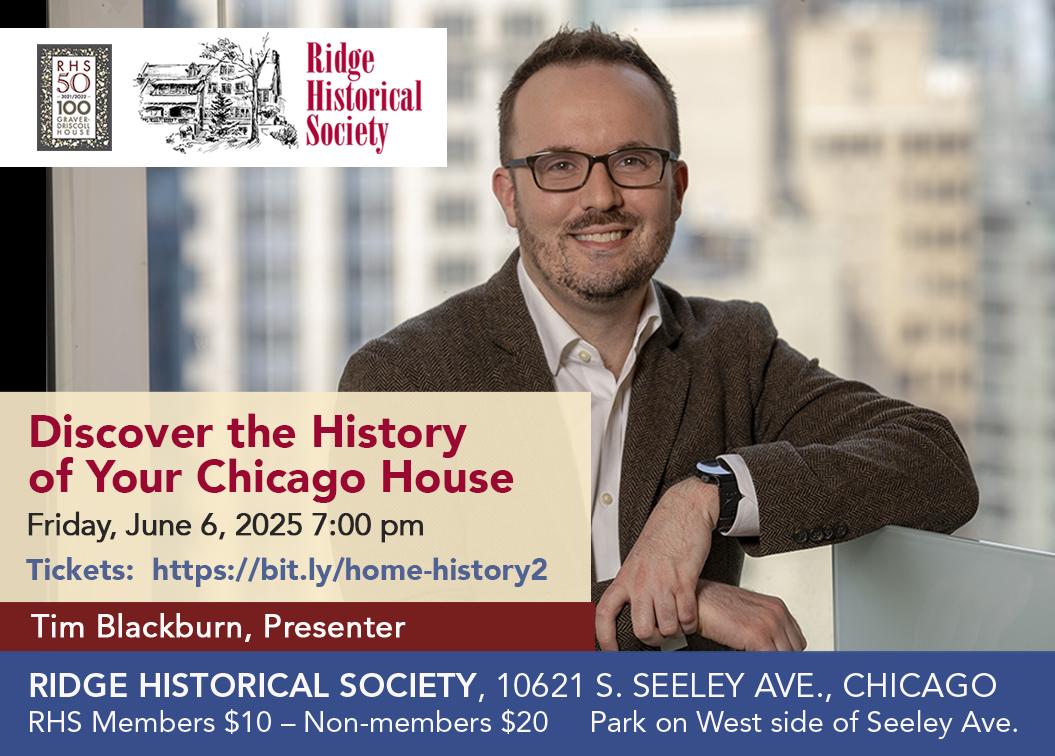 Ridge Historical Society is repeating this very popular event. You will learn how to research the history of your Chicago home, including the architecture, construction, inhabitants, and owners.