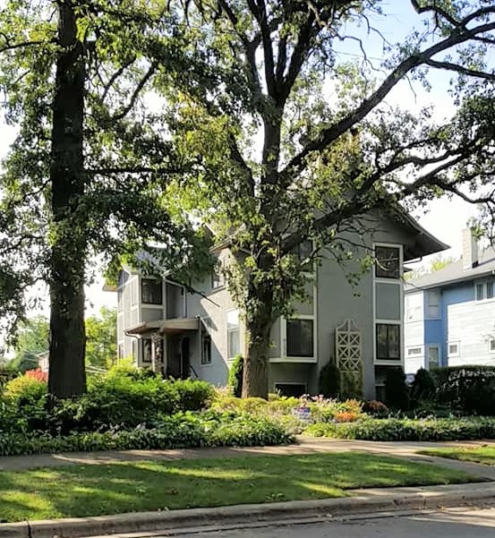 Originally, the only entrance to the property was up the steep driveway from Longwood Drive, around the south side of the house, to the entrance door and garage on the west side of the house. The driveway on the Seeley Avenue, or west, side of the house, with the address 10621 S. Seeley Avenue, was added in the 1940s by the second owner of the house, the Fenn Family.