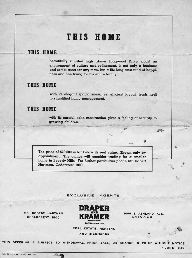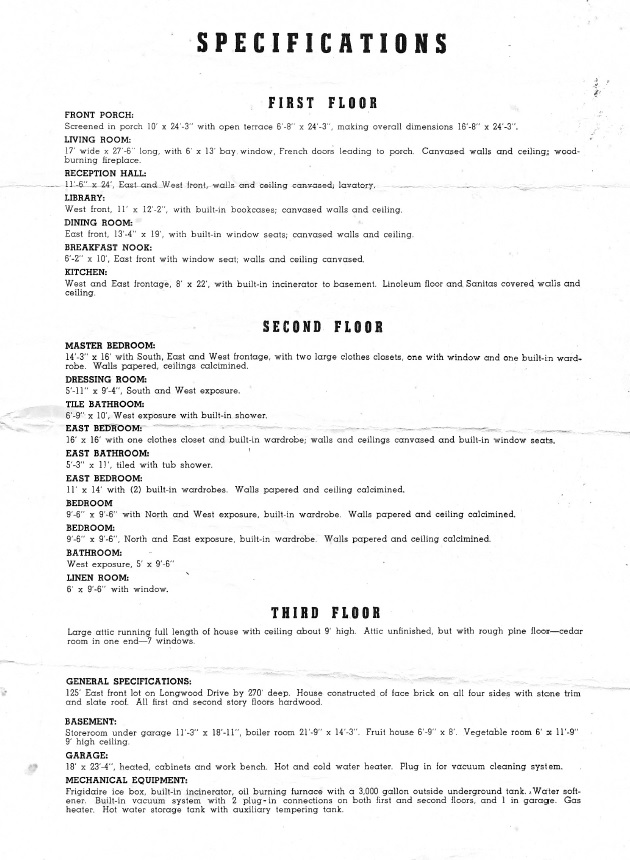 The Fenn family shared with RHS the brochure on the house that was produced when the Graver family put the house on the market in 1940. It is not known if the Gravers altered the house from the original design during their years living there.