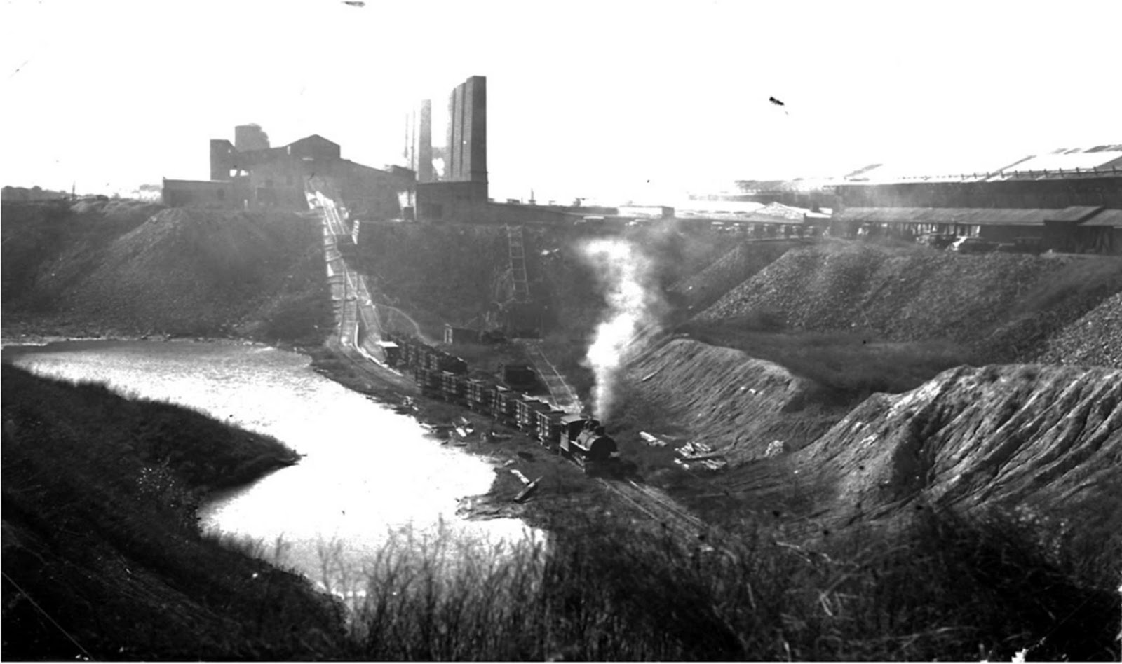 "After it was discovered in the early 1850s that rich deposits of clay surrounded the ridge, Blue Island became the center of a significant brick-making industry that lasted for over a century. In the early years, these efforts were small, with the bricks being made by hand and the turnout created mostly for local use, but by 1886 the Illinois Pressed Brick Company (organized in 1884) was employing about 80 men and using “steam power and the most approved machinery”, which allowed them to produce 50,000 bricks per day.] By 1900, the Clifton Brickyard alone—which had opened in 1883 under the name of Purington at the far northeast corner of the village was producing 150,000,000 bricks a year. In 1886, the Chicago architectural firm of Adler and Sullivan designed a large complex for the Wahl Brothers brickyard (the main building of which was 250 by 350 feet on the west side of the Grand Trunk tracks between 119th and 123rd streets. These buildings had been demolished by 1935, and all of Blue Island’s brickyards were re-purposed by the latter part of the mid-20th century. The larger ones for a while become landfills, and the Wahl Brothers location is now the site of the Meadows Golf Club."