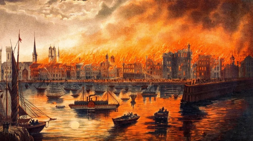 Chicago folklore for years claimed that the fire originated from Mrs. O’Leary’s cow kicking over a lantern. Years later, newspaper reporters admitted they made that up.