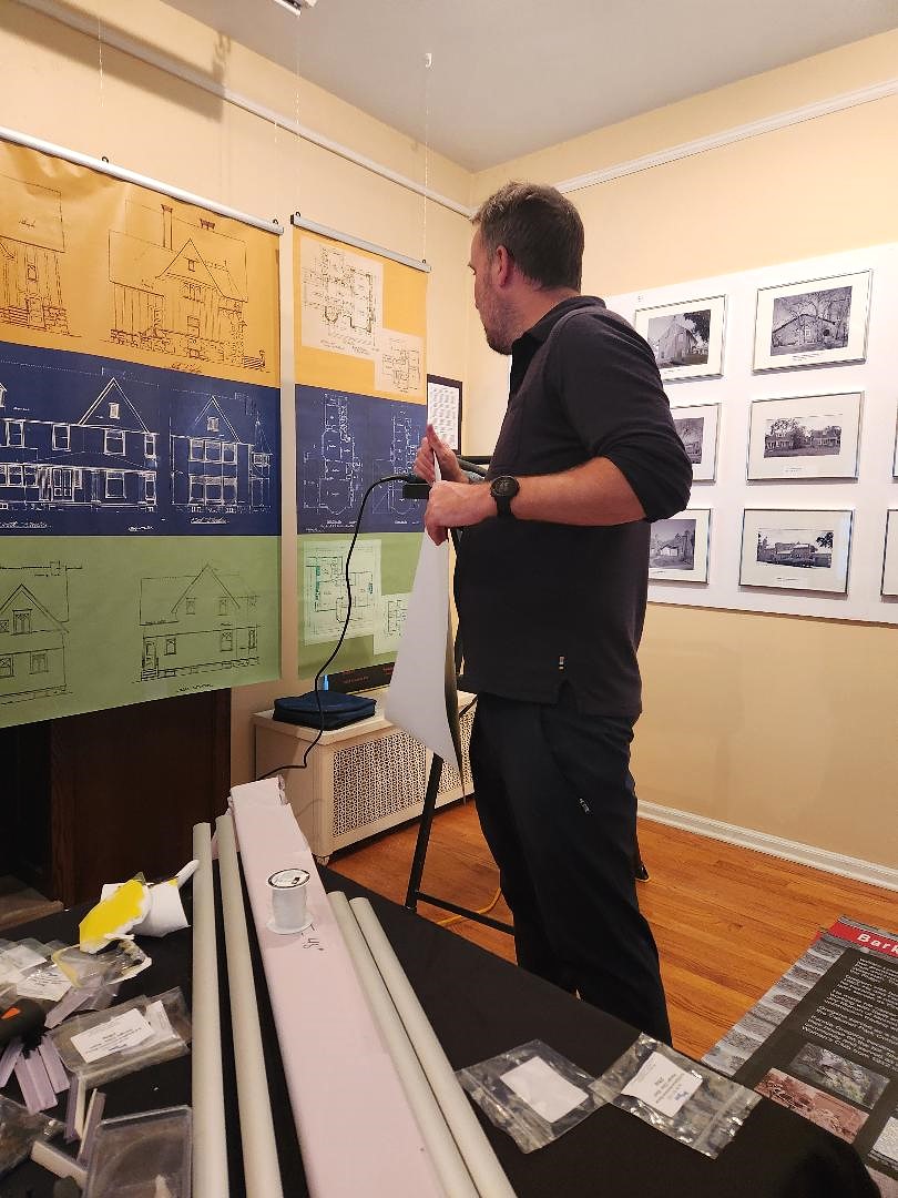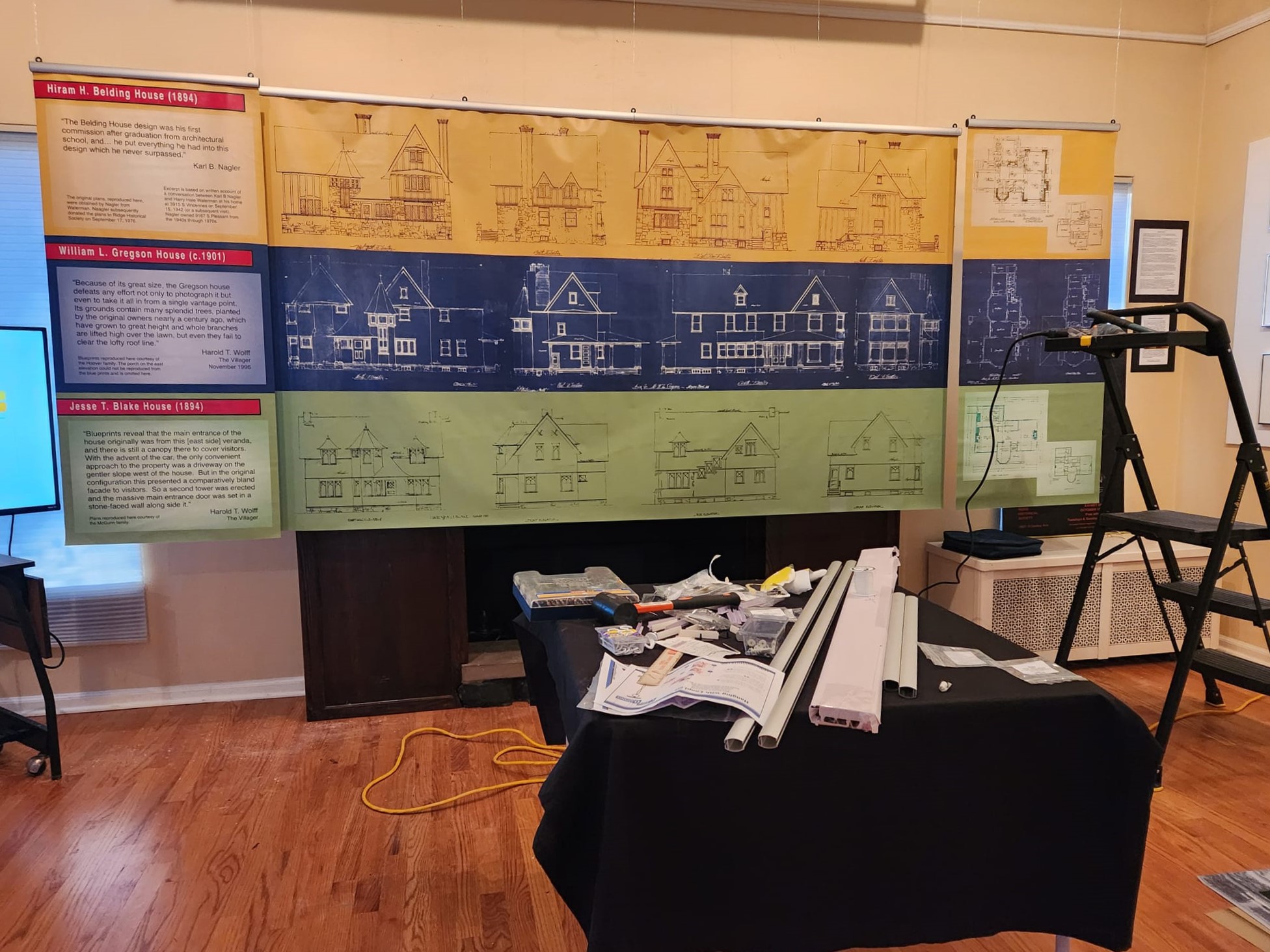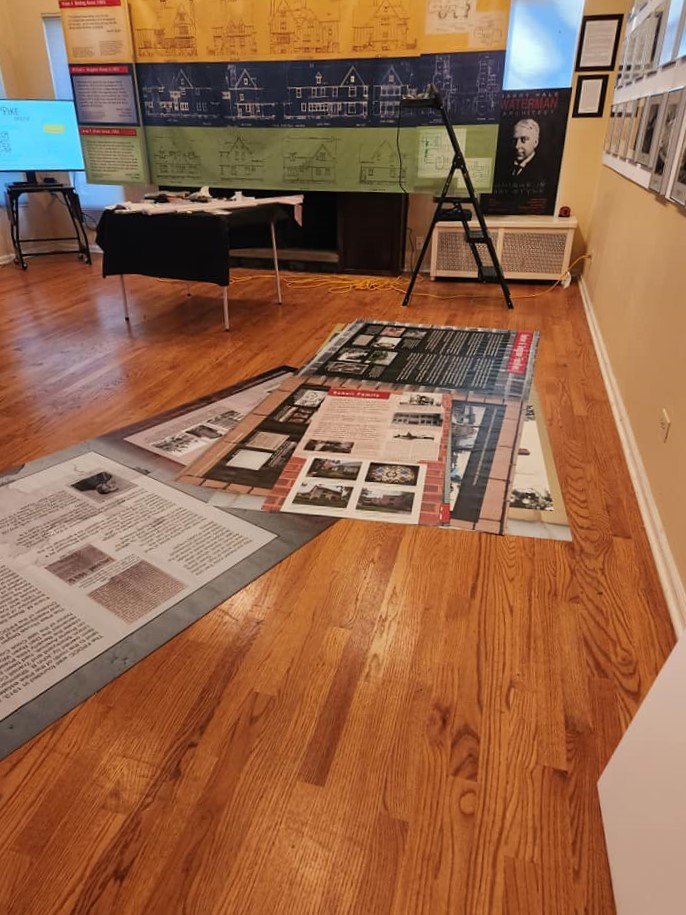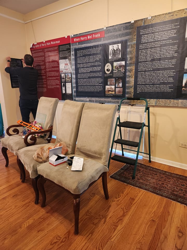 Here's RHS Board member and Curator of the new RHS exhibit "Harry Hale Waterman, Architect: Unique in Any Style," Tim Blackburn, at work today installing the exhibit to premier at Open House Chicago this week-end, October 19 – 20.