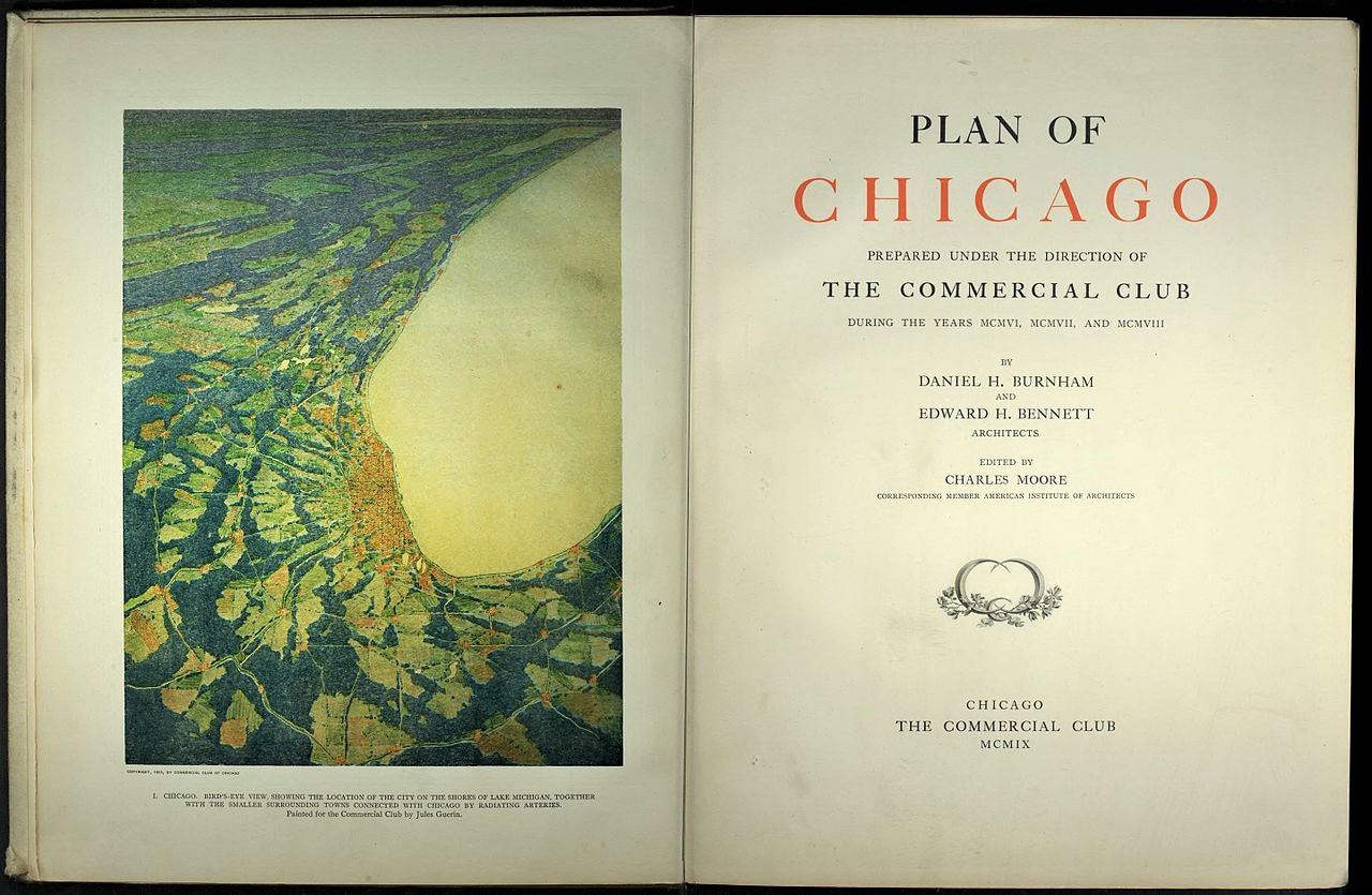 After the 1893 World’s Fair, the leading businessmen in Chicago began to discuss the need for a plan to manage the development, growth and lay-out of the city. In 1907, the Commercial Club, a social organization of these men, worked with Daniel Burnham, the city planner and architect who had created the White City for the World’s Fair, to create such a plan. The Plan of Chicago was published the following year. It’s often referred to as Burnham’s Plan for Chicago.