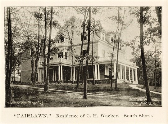 In 1887, Wacker married Ottille M. Glade, a Chicago native, and they had two sons and a daughter. They lived at several locations on the near north side. In 1892-93, Wacker built a “cottage” on Lake Geneva, Wisconsin, that he called Fair Lawn, complete with a Tiffany stained glass dome, billiard room, servants’ quarters and landscaping by noted landscape architect Jens Jensen. This second home became a favorite place for the family to spend summers and weekends.