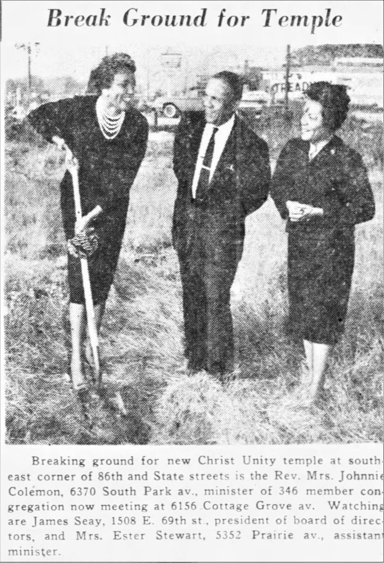 Johnnie was not without controversy. Some of her doctrines differed from traditional Christian teachings. For example, Johnnie taught that heaven and hell were not places, people created their own heaven or hell. She also was criticized because her “Better Living” philosophy encouraged material wealth, and some considered her lifestyle too lavish for a minister. Her response was that “It is God’s will that every individual on the face of this earth should live a healthy, happy, and prosperous life. God is my source of supply ….” She lived to age 94, and really, when compared to some of today’s ministers of megachurches and television ministries, her lifestyle was not that lavish. She had a car and driver, nice clothes, and a fine house in Hyde Park.