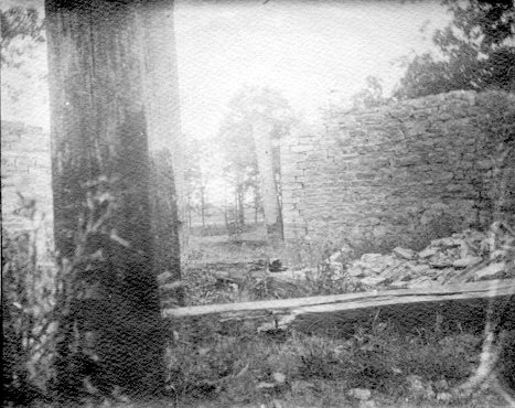 “Directly in front of the dwelling [the remains of Morgan’s house, Upwood] and on the slope of the hill is a stone structure, or rather a large pit, lined with a stone wall, which wall extends, or once did, far above the top of the hill, but of late years, time has reduced it nearly to a parallel with the hillside. At the east side of the wall and at the base of the hill, is an immense opening, once composed of two tremendous oak doors (now broken and probably used for kindling wood) fastened to the wall by enormous iron hinges that reached across each door. The walls are built of very rough stone. Mr. J. Lynch, Sr., the contractor of this wall, quarried the stone of Blue Island, and did the hauling of the stone and all; he alone having to play the part of stone quarrier, teamster and stone mason. It must have been a very tedious job. On entering this pit, which seems to have answered the purpose of a sheepfold, you find its floors to be composed of bits of stones, in all probability fragments of the wall, and other rubbish, likely the accumulation of years. On the west side and leading in toward the hill is an opening in the wall. On crossing the threshold of what was once a doorway, you imagine yourself about to descend into the depths of darkness by a subterranean passage. But ‘ere you have walked within the distance of about thirty-six inches, you presently find yourself in a round turret shaped cell, with an oval ceiling. In the ceiling is an opening which leads to the surface of the ground. This opening is covered by an immense stone placed over the hole where it makes its appearance on the hill. This cell is built of brick, and unlike the sheep-fold it has a good stone floor. It seems that at one time there was a door dividing the cell from the fold. It seems the cell answered the purpose of an icehouse, and the opening a mere ventilator. The place seems to have stamped on its surface everywhere antiquity.”