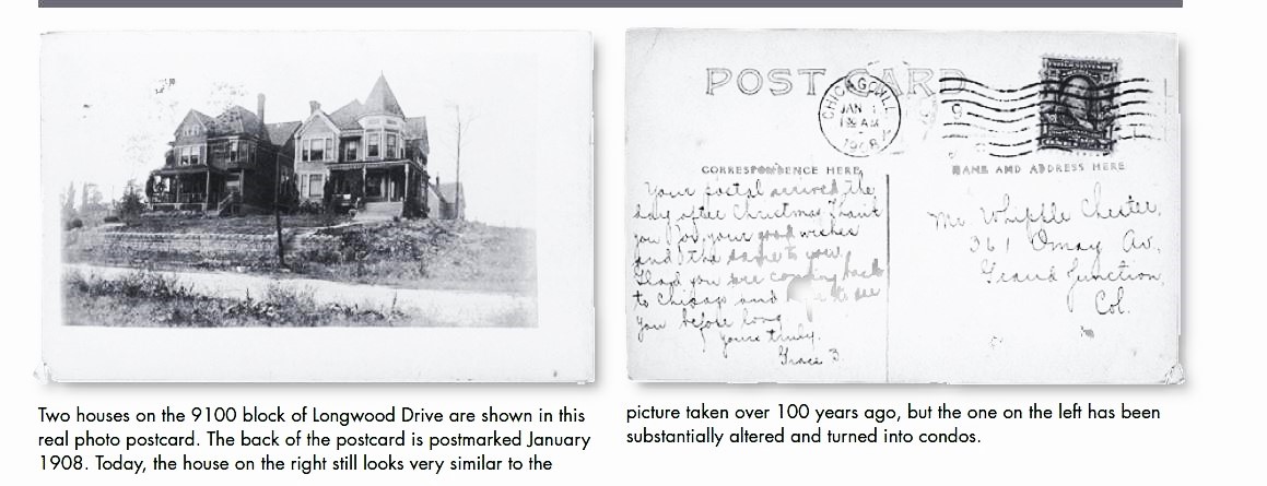 The current houses on this site have a limestone wall in front of them that possibly is made from the remains of the sheepfold/icehouse. The house at 9122 S. Longwood Drive was owned and turned into an apartment building by architect John Todd Hetherington in the 1920s.