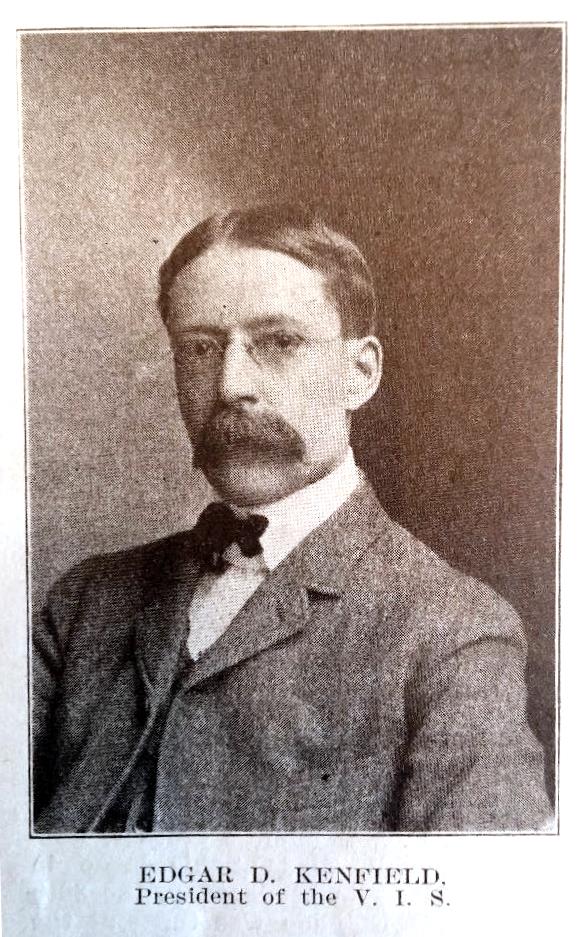Edgar D. Kenfield became the next president of the Morgan Park Improvement Association (MPIA) in 1900. He was an executive with Eastman and Brothers Company which manufactured and sold perfumed soaps. He lived on Morgan Street, which became 111th Street when Morgan Park annexed to Chicago. His house was near the Walker Library, but is no longer standing.