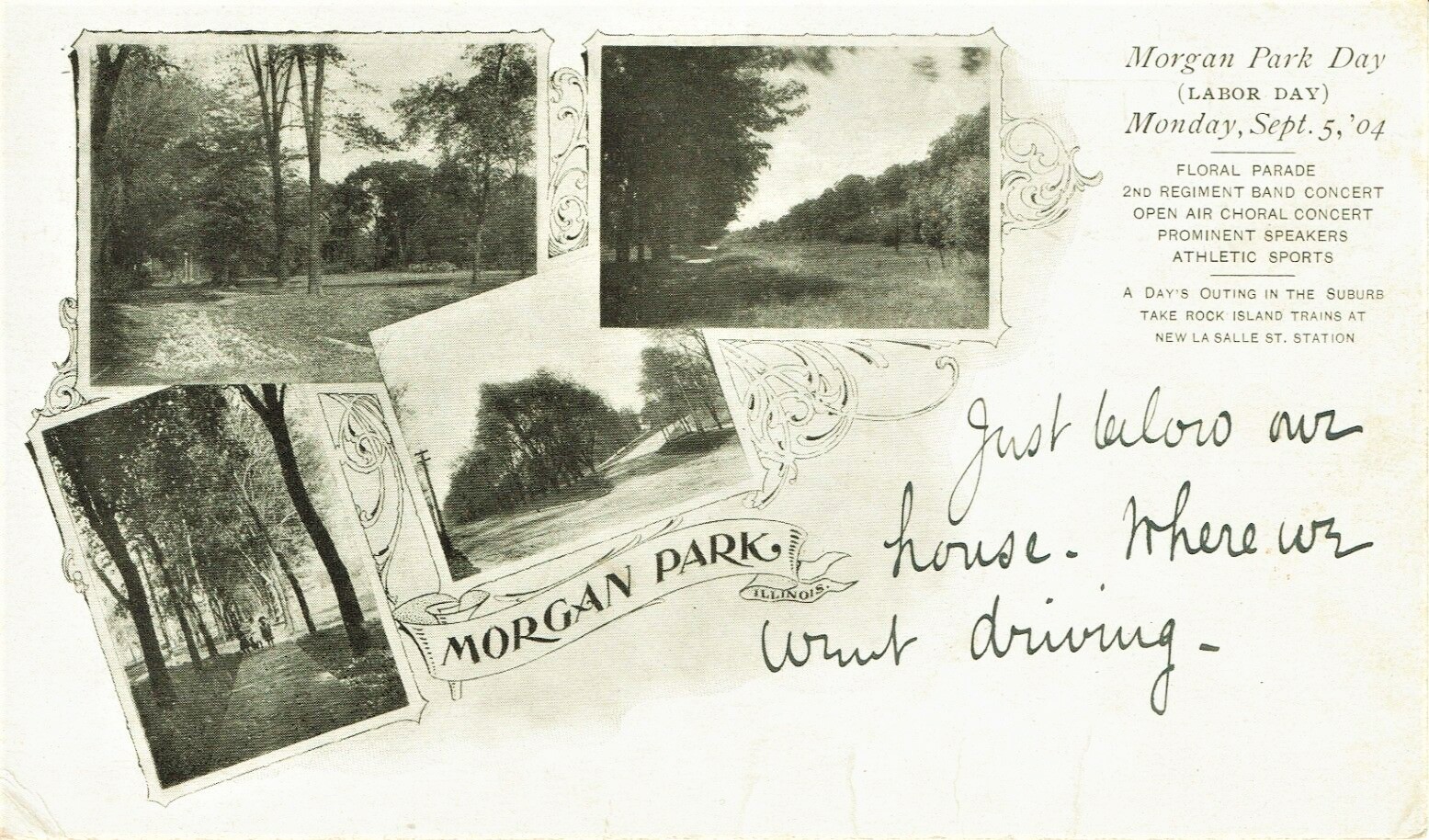 In 1904, souvenir postcards with scenes from Morgan Park were sent out by the thousands as invitations. Special trains ran on the Rock Island line to accommodate the extra crowd.