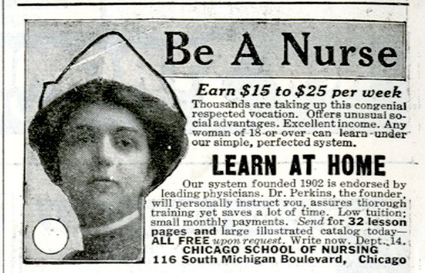 Wrote Edna L. Foley, the head of the Visiting Nurses Association: “…There are no over trained nurses, but there are too many poor training schools…. The education of a nurse has become more complex and involved because the advancement of medical and surgical science made better trained and more skilled nurses necessary…. Private duty nursing in the home is the hardest, least attractive type of nursing work…. The household nurse, the neighborhood nurse, the practical nurse, or the attendant, as she has been variously called, is a combination devoutly to be wished for, a kindly, capable, practical person, useful in the sick room, equally useful in a kitchenette or in the nursery: a woman able to be on duty from twelve to eighteen hours a day, and on call at night; a woman who is a good housekeeper as well as a sick room caretaker.”