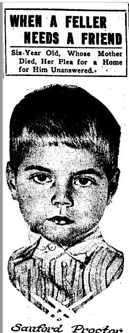 Sanford Proctor was a six-year old boy whose mother died of influenza during the 1918 pandemic. Having already lost his father, Sanford was now an orphan. On her deathbed, his mother had contacted the Chicago Daily Tribune to ask for help in finding a home for her son. Scores of people contacted the Tribune with offers to adopt the boy.