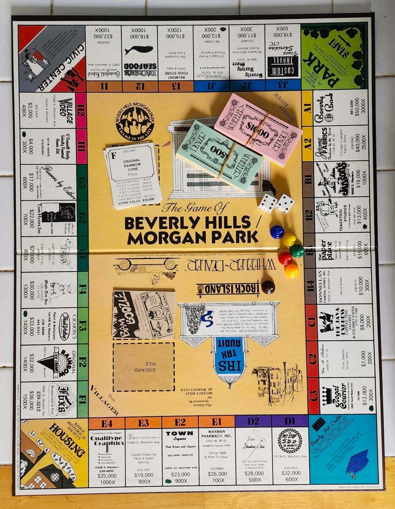 Forty years ago, the Beverly Hills Junior Woman’s Club came out with a boardgame for this community. “The Game of Beverly Hills/Morgan Park” was a fund raiser, likely for nursing school scholarships. The game, based on Monopoly, was a customized product from a company in Michigan. You can read all about it in this week’s Beverly Review at: https://www.beverlyreview.net/news/community_news/article_ce5223bc-6a82-11ed-89bb-8f4a686346d3.html