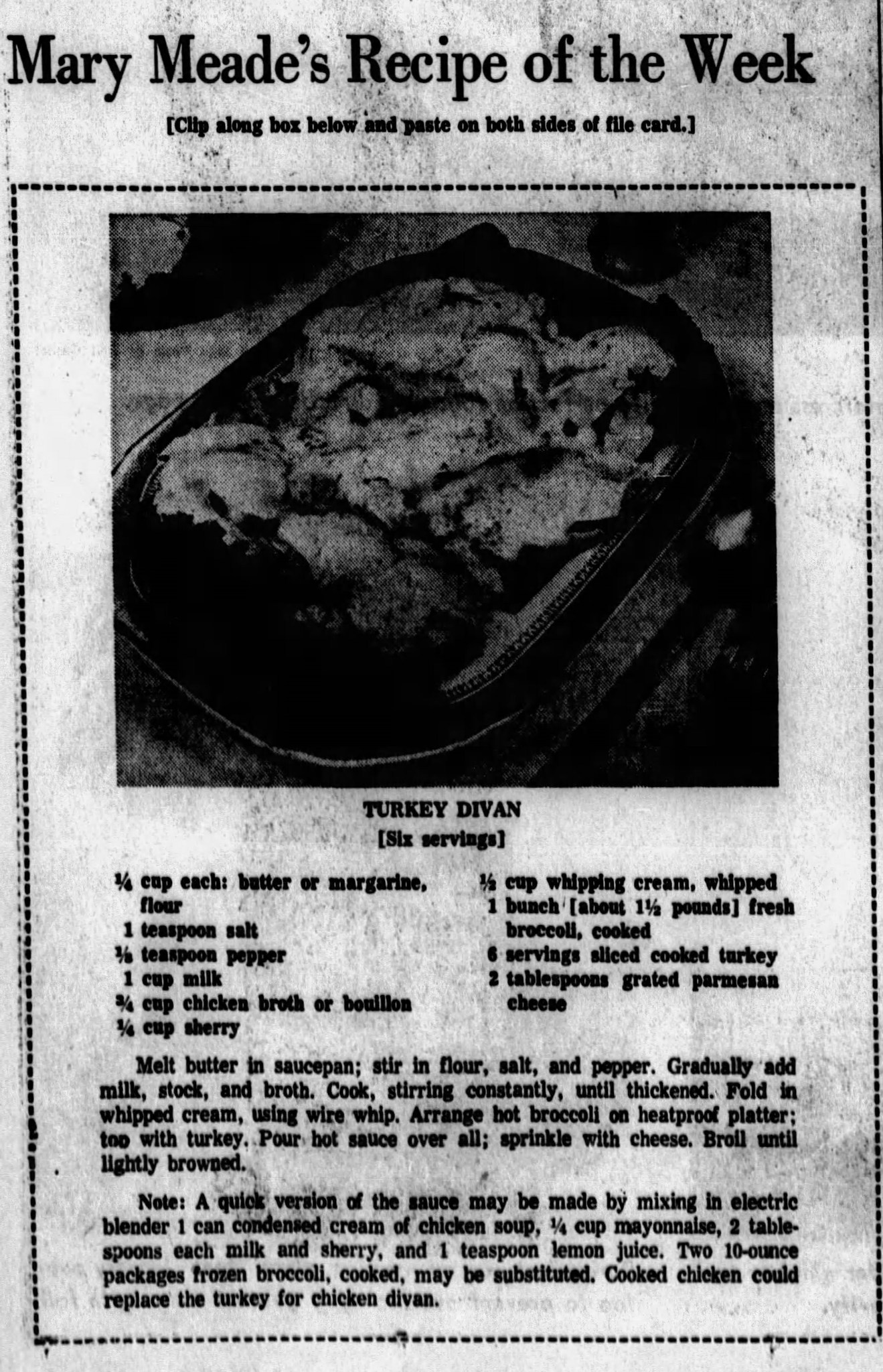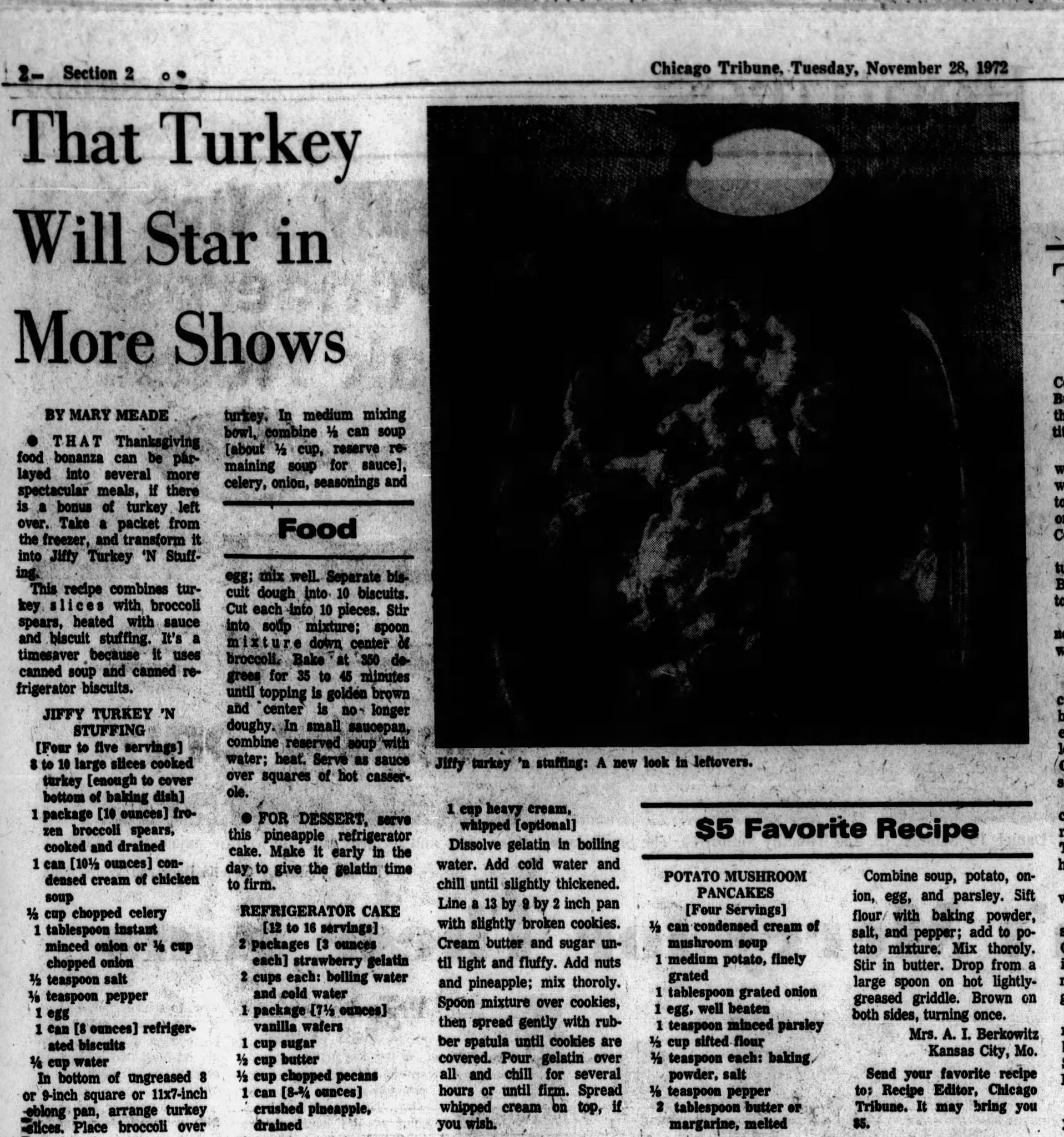 They were published in the Chicago Tribune during the years the position of Mary Meade, the food editor, was held by Beverly resident Ruth Ellen Church.