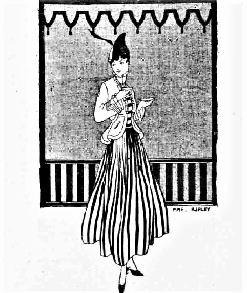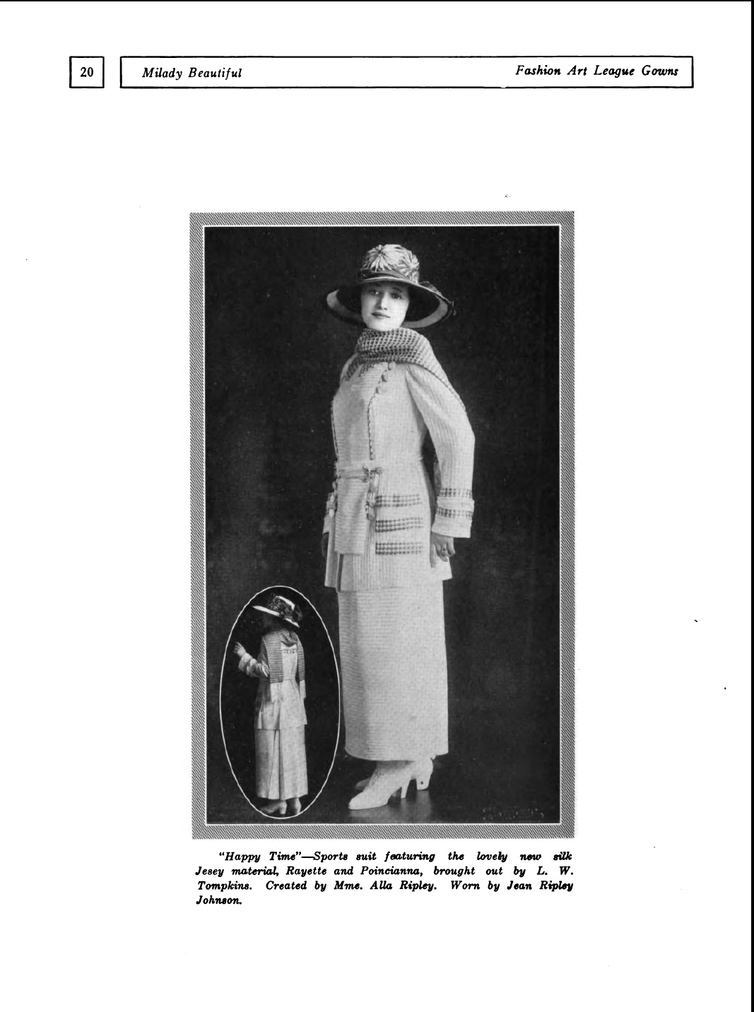 Alla was called "the maker of modes" and "the very last word in style" during her years as Madame Ripley. Her studio was on Michigan Ave., just down the street from the Art Institute. She dictated fashion styles through the bulletins she authored as president of the Fashion Art League of America. It was said that her fashions were "marked by a grace of line that suggests a Parish original." Some of her designs from publications of her day are shown in the exhibit.