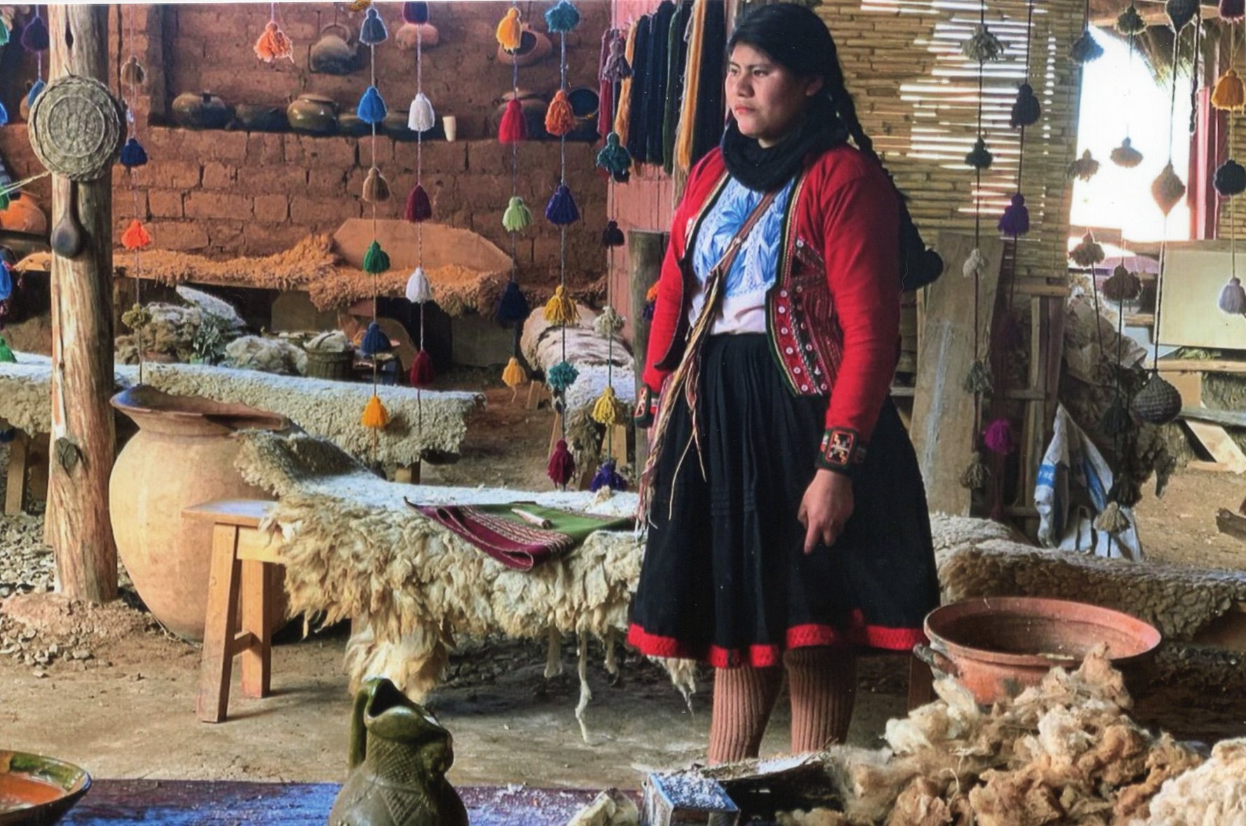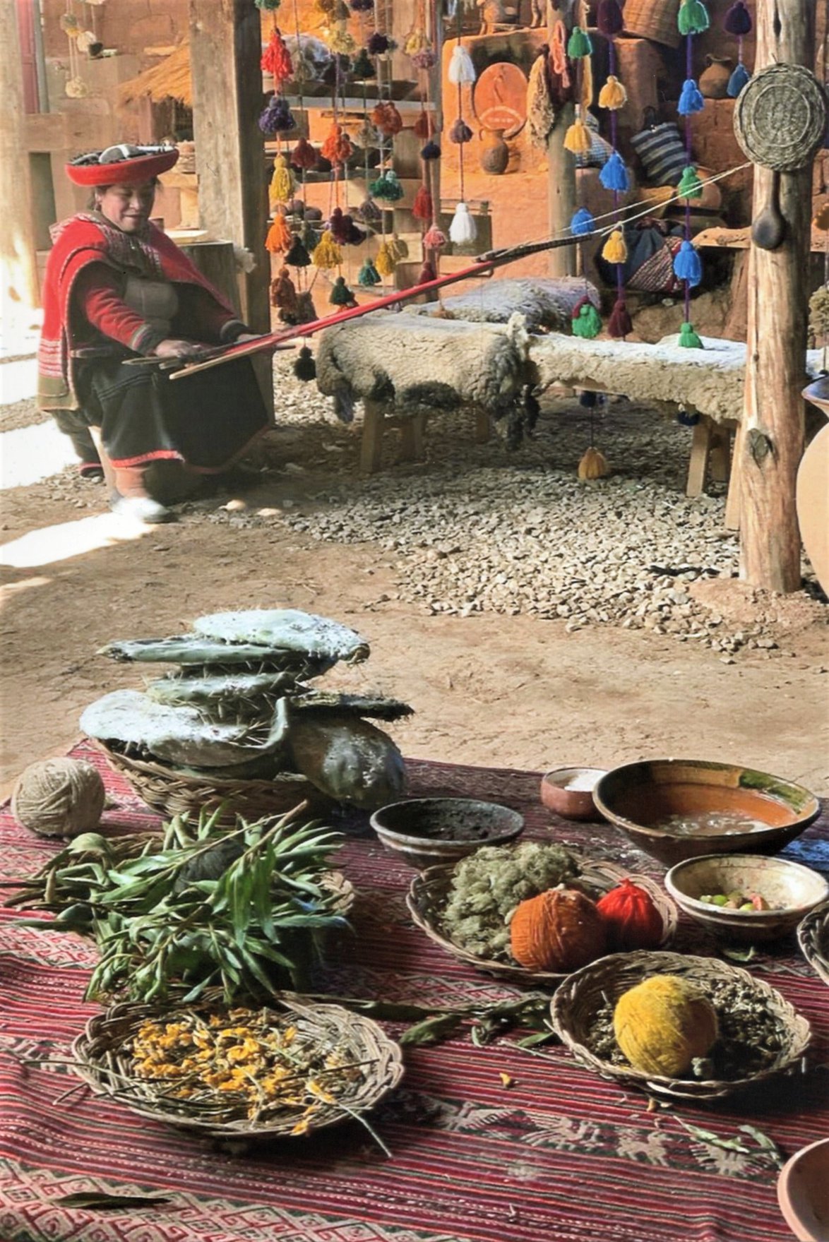 Maggie was joined by her father-in-law, Vidal Gomez Pando, who is visiting for the holidays from Peru. She shared interesting photos of the artisans at work at their homes in the Andes Mountains. They do all the work locally – sheer the sheep for the wool, spin it into yarn, color the yarn with natural dyes, and weave beautiful fabrics. The fabrics are used for the bags and purses, and pillows and blankets, that The MAYTA Collection brings to the U.S.