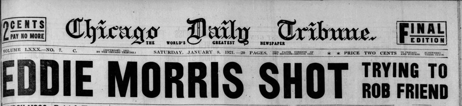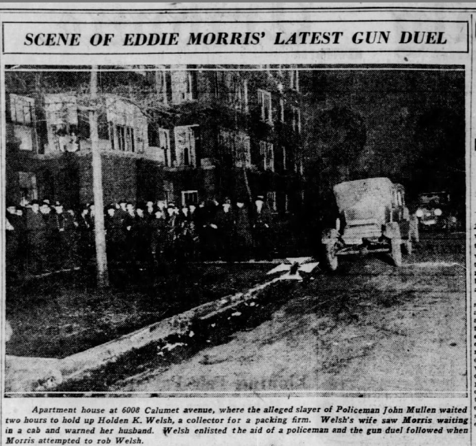 Eddie Morris, wanted for the killing of Chicago patrolman John Mullen on January 3, 1921, continued to elude the police.