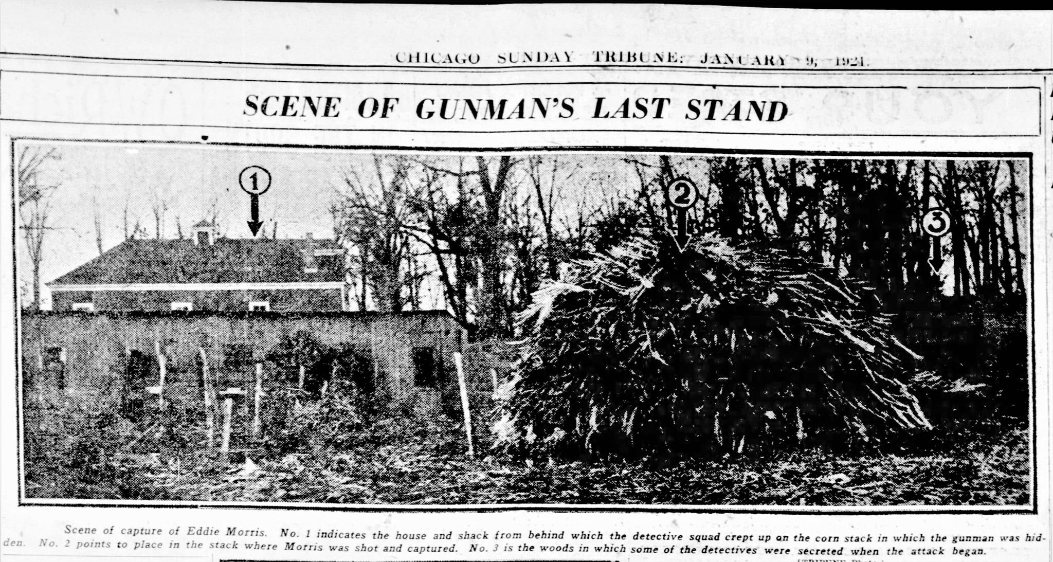 In the early morning of January 8, 1921, Morris was apprehended. He was found hiding in a “corn shock,” or mound of corn stacked for drying, on a “vegetable farm” in Beverly/Evergreen Park.