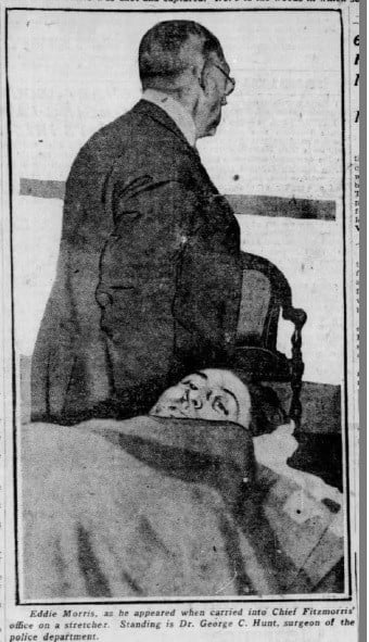 From a third: “Morris is in the hospital ward at the county jail, desperately wounded. Morris was wounded in a volley of revolver and rifle fire when he disregarded calls to surrender.”