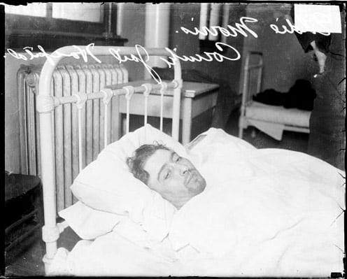 Eddie Morris was arrested for the murder of police officer John Mullen on January 8, 1921. The newspapers and his lawyers reported Morris was “fighting for his life” from the bullet wounds inflicted by police but the prison doctor said he would recover.
