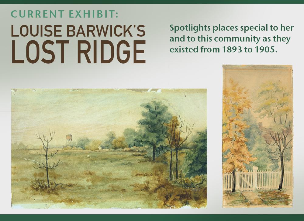 The Ridge Historical Society will be open today, Tuesday, January 2, 2024, for visitors to view the current exhibit, "Louise Barwick's Lost Ridge."