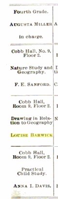 During the 1890s, Louise taught classes at the Normal School as part of the Geography program. Some of the topics were “Drawing Geographical Types,” and “Relief Maps in Chalk.”