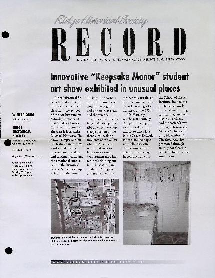 - •Innovative "Keepsake Manor" student art show exhibited in unusual places